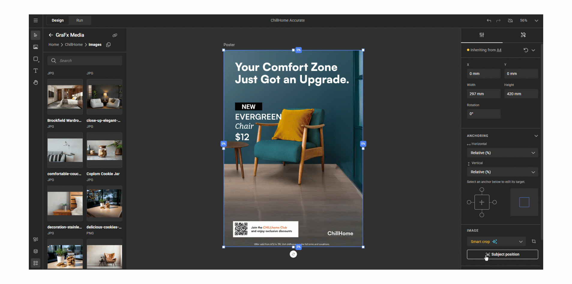 CHILI GraFx enables designers to create one master Design System that generates consistent promotional assets across every channel, from a single source of truth. One dynamic layout, multiple output formats. Designers focus on the creative; the platform handles format adaptation and multichannel output.