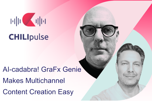 In this CHILIpulse episode, our host Bram Verniest and Serge Bonehill, Solution Adoption Manager, show how our AI assistant, GraFx Genie, can streamline smart template creation, simplify complex graphic production workflows, and bring creative automation to the next level.